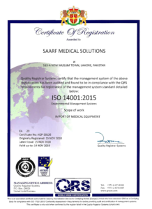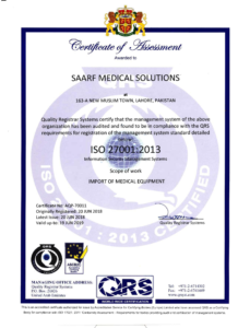SAARF Medical Solutions believes in quality management and implements policies to ensure quality in every department of the organization. Some of the prominent policies acquired and implemented for qualification of the ISO certificates below include Quality Policy, Information Security Policy and Work, Health and Safety Policy. We are registered with all concerned Federal and Provincial departments, and own certifications like ISO 9001, OHSAS 18001, ISO 27001.