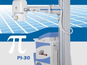 The Pl mobile radiographic units family covers all the specific needs of the radiographic examination at the patient’s bed, when he can’t reach the Radiology Department The two versions offer each one a different level of radiographic power (PIS-3,3 kW I Pl30-30 kW), by keeping anyway an absorption f energy from the mains, always within the limits of a standard mains plug. This mobile radiographic device achieves very short exposure times and consequently radiographic images not affected by problems of loss of resolution caused by the patient’s movement, even for examinations needing a very high level of dose. A microprocessor controls the operations and manages the parameters for a correct exposure and for the fast detection and signaling of eventual malfunctions. The APR system allows a simple and quick use of the unit, by the possible storage of the most used exposure parameters. The wide balancing stand’s arm, gives the possibility of an easy setting of the Focus-Film distance. An adequate multi-leaf collimator, suited with a special tilting mirror, allows the precise centering of the X-ray beam, prior to the radiographic exposure.